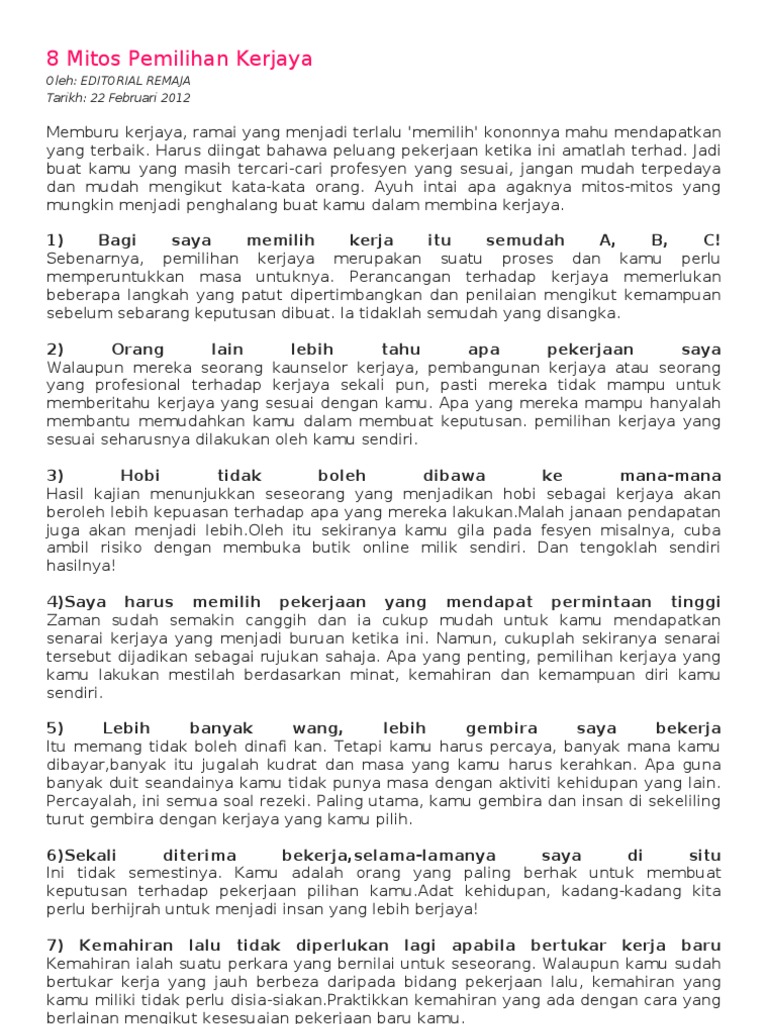 Karangan Faktor Pemilihan Kerjaya Oleh Generasi Muda